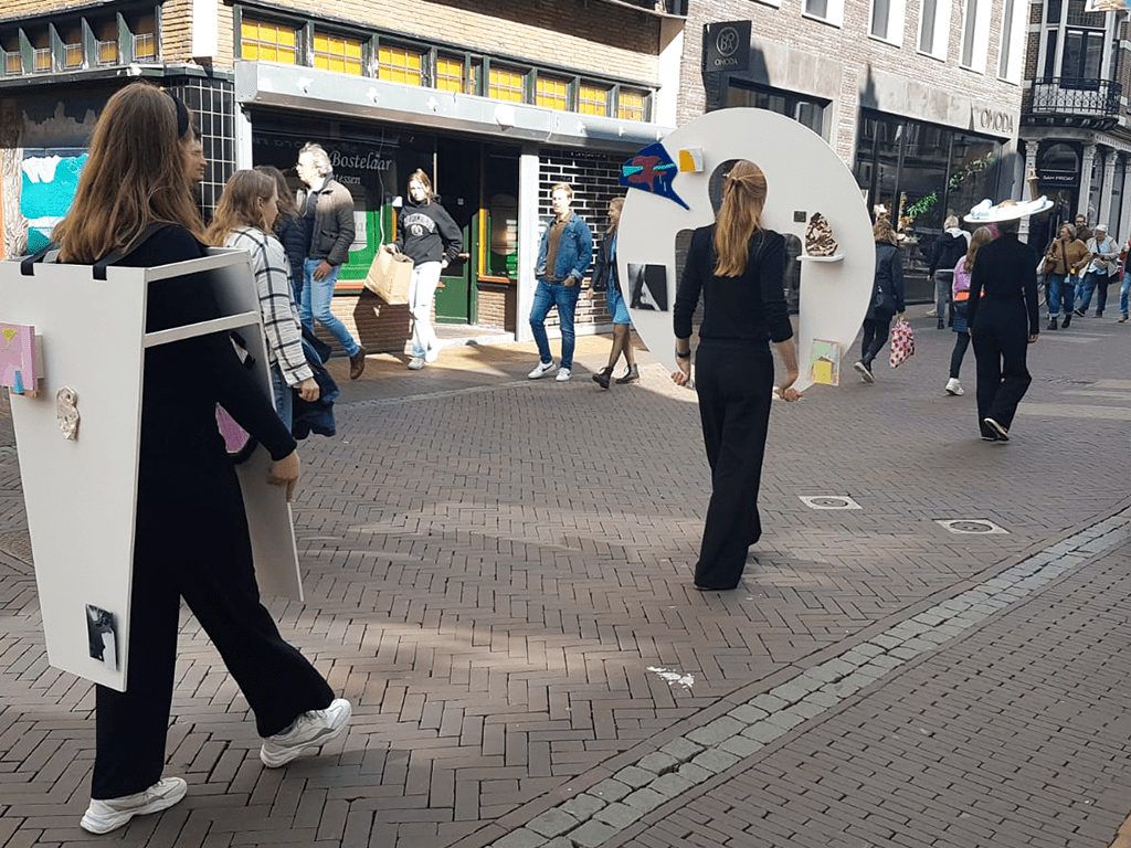 Tijdens kunstroute ‘CareFull’ presenteerden wij ‘a series of walking white cubes’, een draagbare expositie die kunst dichterbij de toeschouwer brengt. Hiermee onderzochten we hoe het mogelijk is meer contact te creëren tussen kunst en toeschouwer én toeschouwers onder elkaar. Op de ‘walking white cubes’ werd ons individuele werk getoond. Tijdens CareFull waren wij te vinden op diverse locaties: de Oude Wolvenplein Gevangenis tijdens ‘Rondje Singel’, een leegstaand winkelpand aan Steenweg 26 & Restaurant Karma Kebab. Naast de performance organiseerden wij ook diverse activiteiten, zoals filmavonden, maakactiviteiten en Artist Talks.
